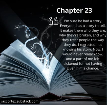 You are reading a reader-supported serialized novel tentatively due for release Winter 2024, by Indie Author Jax Cortez. To continue reading this chapter in full beyond this point, and subsequent new chapters, consider becoming a paid subscriber to help support her work. Thank you for visiting!